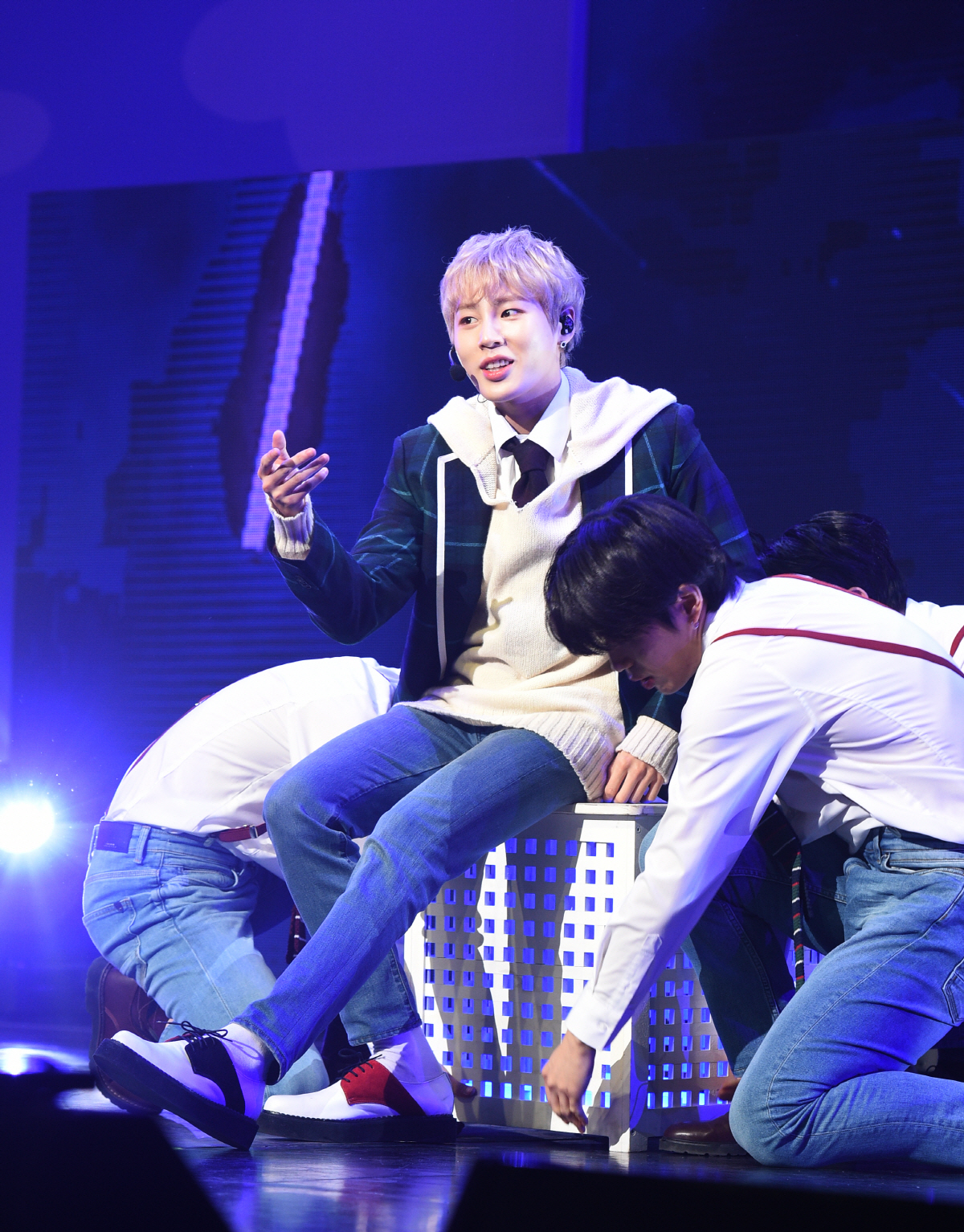 워너원 출신 가수 하성운이 27일 서울 광진구 예스24 라이브홀에서 열린 첫 번째 솔로 미니앨범 '마이 모먼트(My Moment)' 발매 기념 쇼케이스에서 열창하고 있다. 이번 앨범은 하성운이 처음으로 총괄 프로듀서를 맡아 작사, 작곡은 물론 믹스, 마스터 등 모든 음반 작업 과정에 참여해 주목 받고 있다