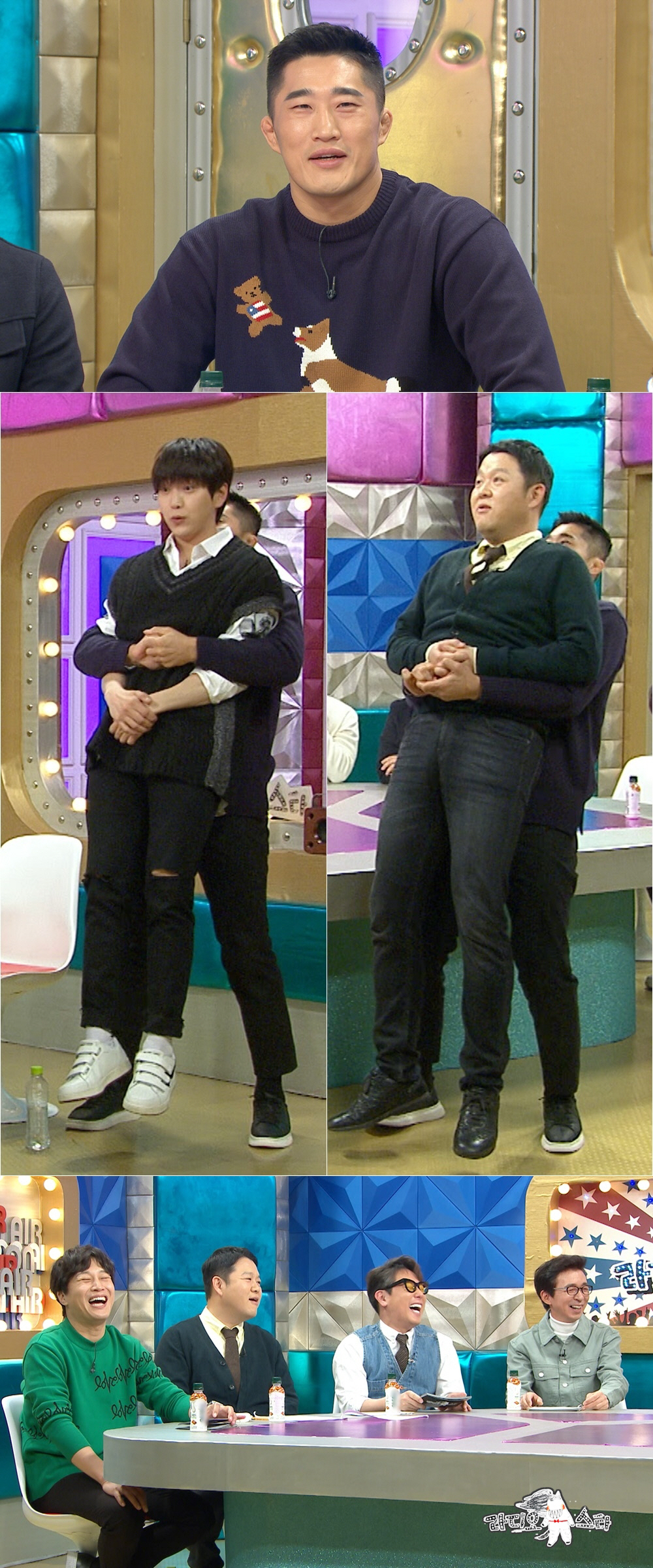 [스포츠조선닷컴 김준석 기자] '라디오스타'에 출연한 파이터 김동현이 산들과 김구라를 번쩍 들어 올리면서 인간 체중계로 변신해 큰 웃음을 자아낼 예정이다. 이와 함께 그는 체중조절을 해야만 하는 격투기 선수들의 식욕을 조절하는 물이 따로 있다고 밝히며 뜻밖의 팁을 대방출할 예정이어서 기대를 모은다.