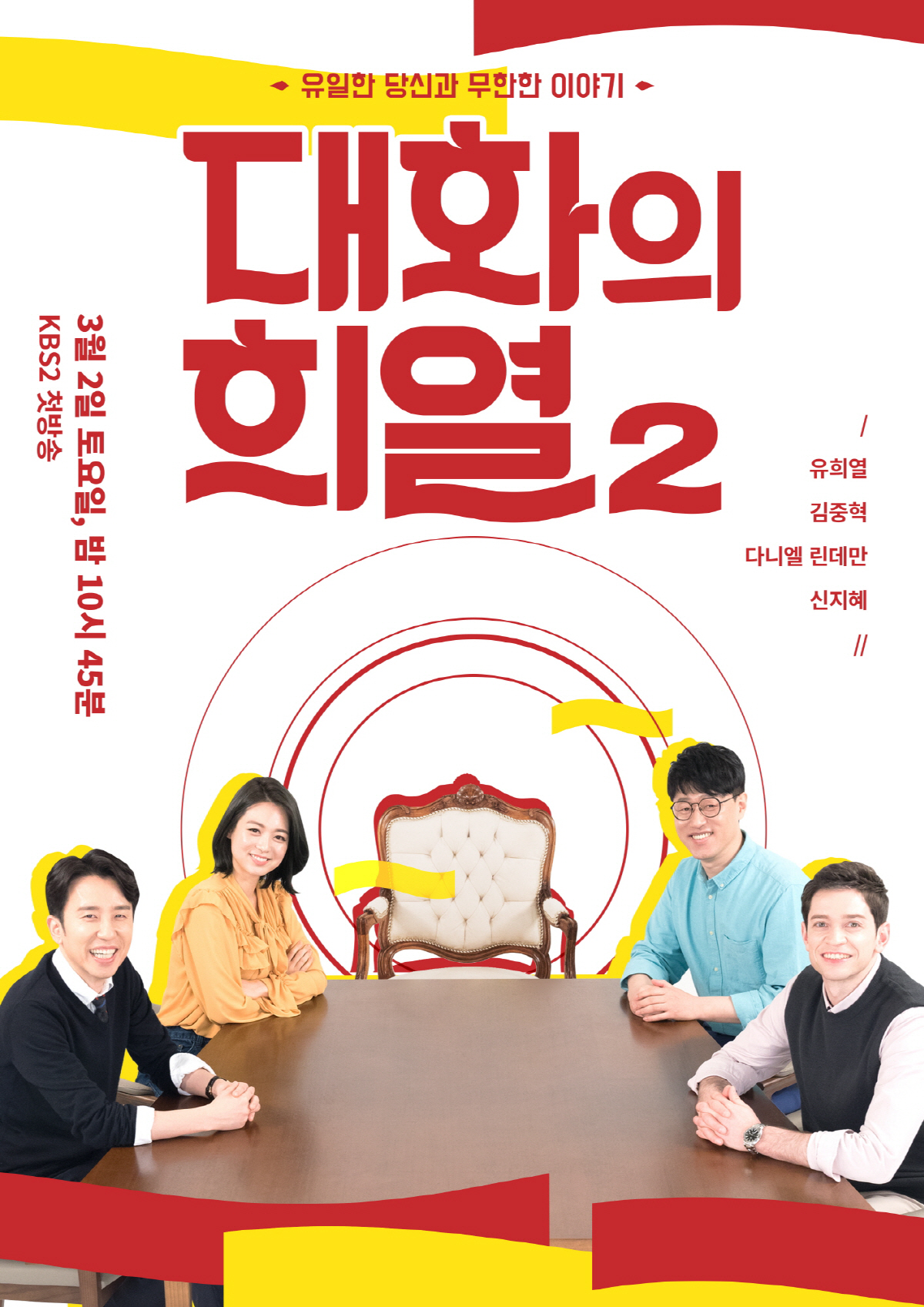 '대화의 희열' 시즌2는 지금 가장 만나고 싶은 단 한 사람을 초대해 대화를 나누는 원나잇 딥토크쇼다. MC 유희열, 소설가 김중혁, 방송인 다니엘 린데만 그리고 새로 합류한 신지혜 기자의 토크가 펼쳐진다. 3월 2일 오후 10시 45분 첫 방송된다.