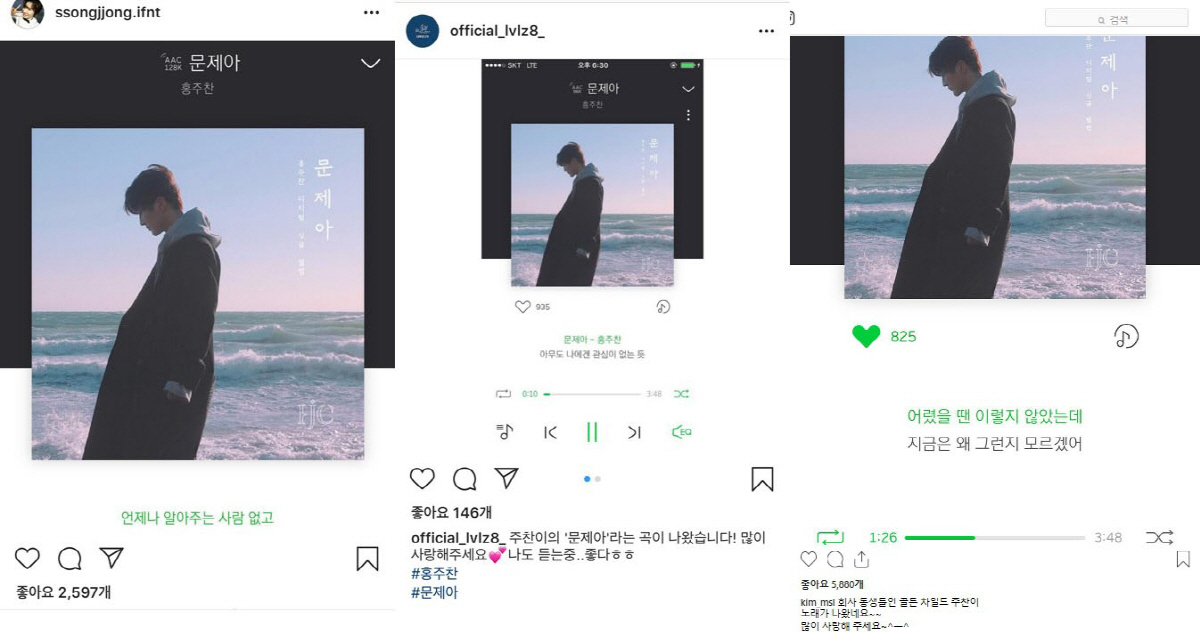 가장 먼저 응원의 메시지를 보낸 인피니트 성종은 "주찬이 화이팅"이라며 음원사이트에서 '문제아'를 스트리밍하고 있는 이미지를 업로드 했다. 러블리즈 또한 "주찬이의 '문제아'라는 곡이 나왔습니다. 많이 사랑해주세요. 나도 듣는중...좋다"라는 텍스트와 이미지를 함께 게재했다.