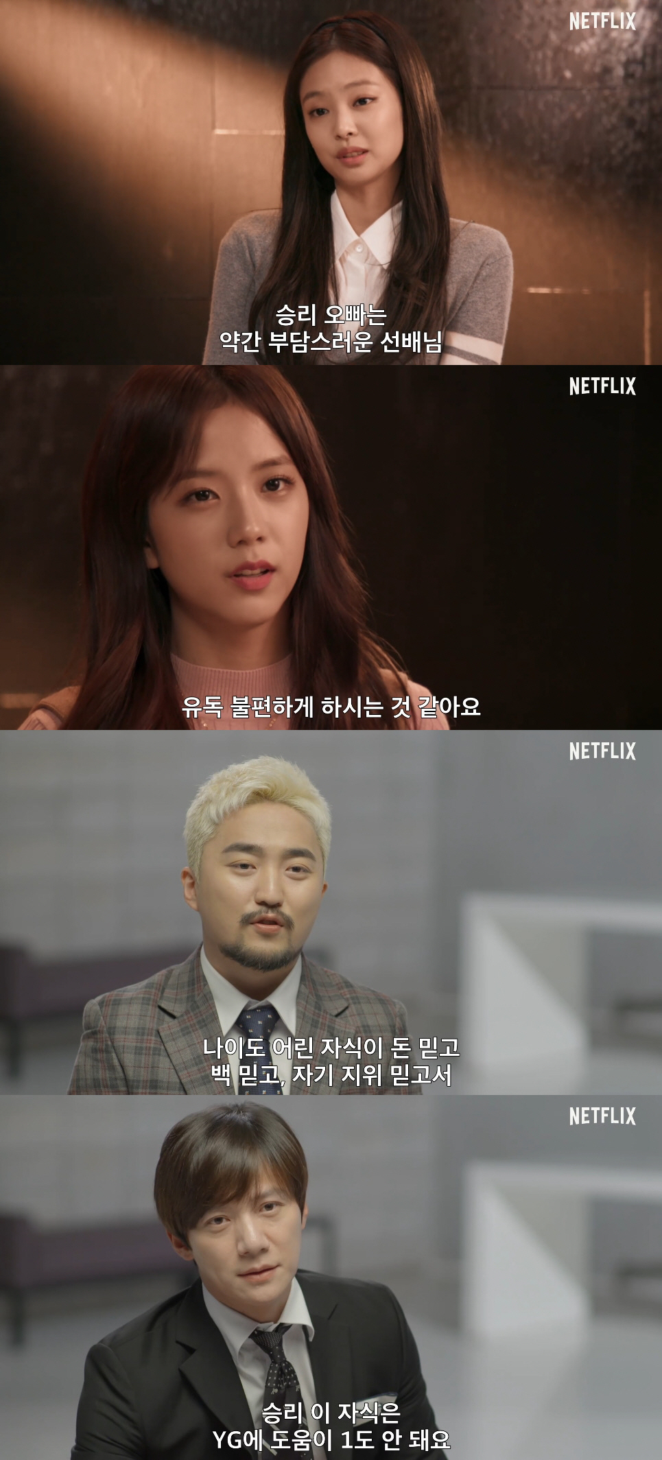 블랙핑크 제니는 승리에 대해 "약간 부담스러운 선배님"이라고 말했고, 지수는 "유독 불편하게 하는 것 같다"고 털어놨다. 또 손나은은 "그래서 사실 별로 마주치고 싶지 않았다"고 밝혔고, 선미는 "예전부터 승리 조심하라고 선배들이 항상 얘기했다. 특히 여자 선배들이"라고 말했다.
