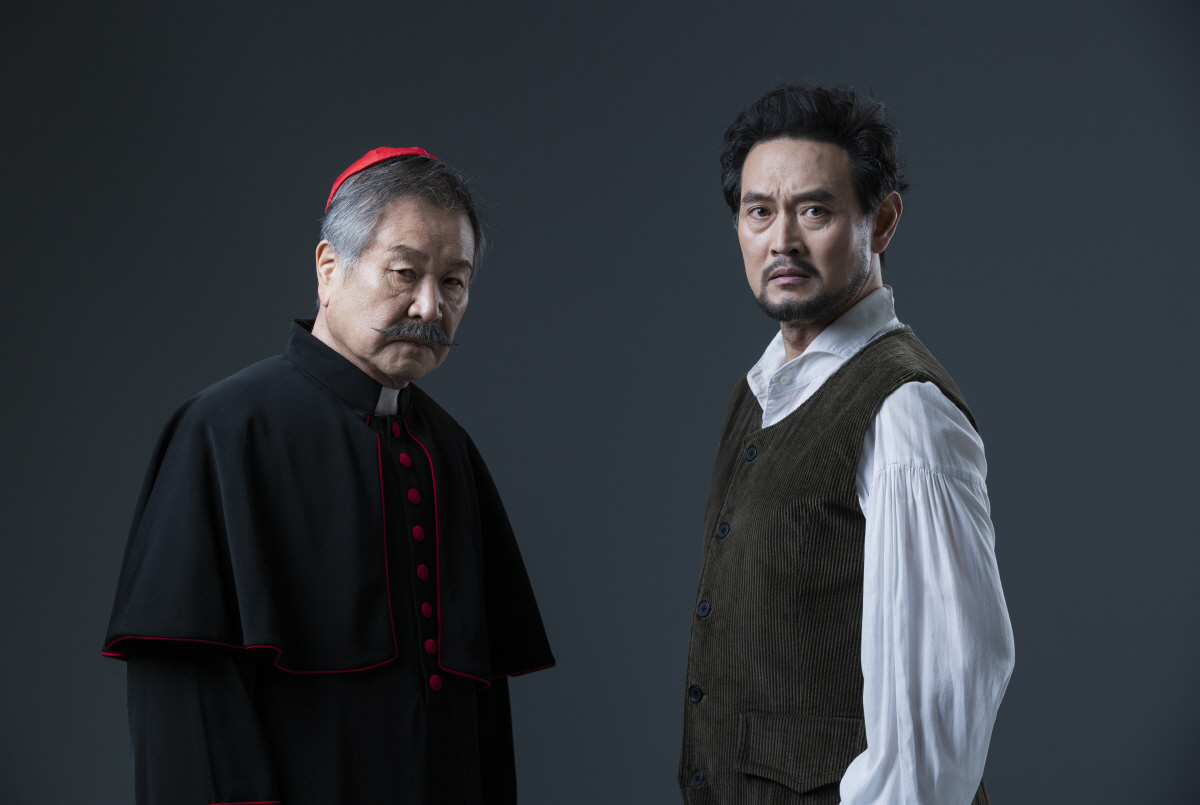◇국립극단이 베르톨트 브레히트의 '갈릴레이의 생애'를 공연한다. 갈릴레이 역의 김명수(오른쪽)과 재판장 역의 이호재. 사진제공=국립극단