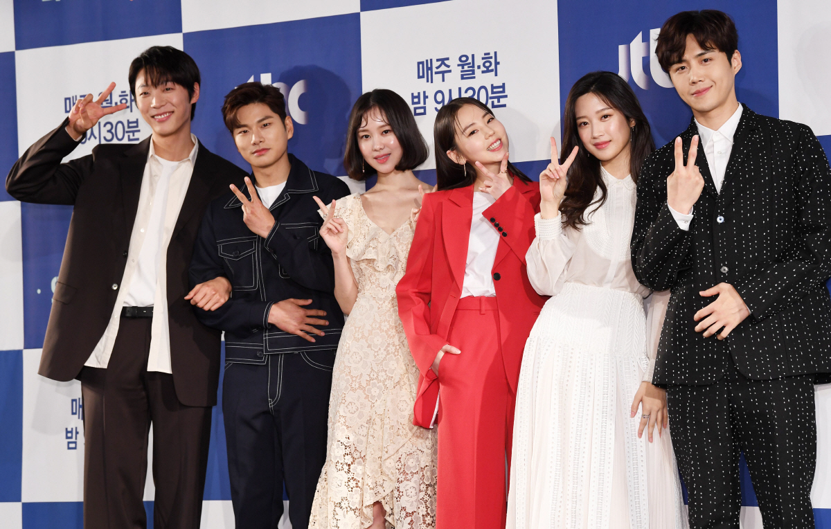 JTBC 새 월화드라마 '으라차차 와이키키2'의 제작발표회가 25일 서울 여의도 콘래드호텔에서 열렸다. '으라차차 와이키키2'는 대환장의 수맥이 흐르는 게스트하우스 '와이키키'에 다시 모여들고만 청춘들의 우정과 사랑, 꿈을 위한 도전을 유쾌하게 그린다. 포토타임을 갖는 신현수 이이경 김예원 안소희 문가영 김선호의 모습. 여의도=허상욱 기자 wook@sportschosun.com/2019.03.25/