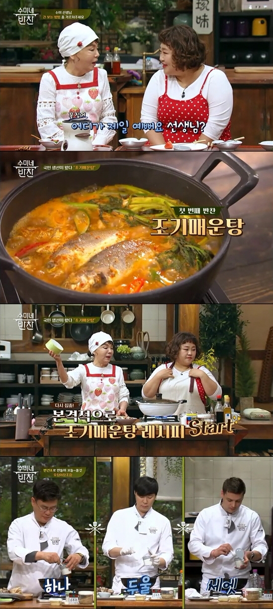 [스포츠조선 남재륜 기자] 가득 차오른 '조기'로 얼큰하게 끓여낸 '조기 매운탕' 레시피를 공개한다. 또한 식감이 매력적인 반건조 오징어를 간장에 조려낸 오징어 장조림, 집에서도 손쉽게 해먹을 수 있는 초간단 '수미네 닭갈비'를 선보인다.