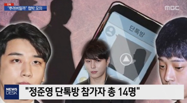 MBC는 '승리 단톡방'에 정준영, 최종훈, 용준형을 포함해 총 14명이 있었고, 연예인으로는 가수 K, J와 모델 L이 새로 등장했다고 보도했다. 이들은 서로 다른 단톡방에서 불법 영상을 공유하고 자랑했으며, 성관계 영상을 협박 도구로 사용하려 했던 것으로 드러났다.