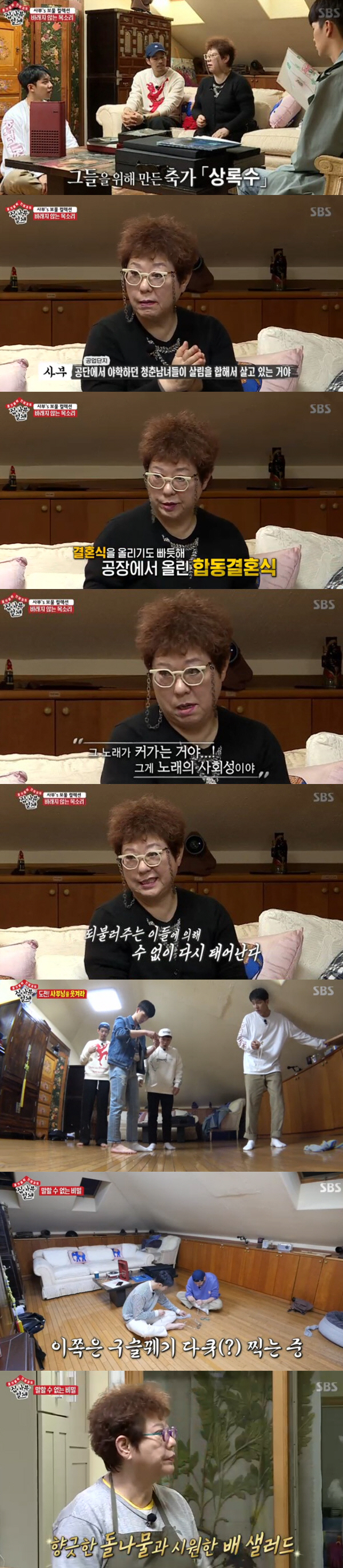 상승형재는 양희은이 보관하고 있는 LP를 들으며 추억에 잠겼다. 사부는 '상록수'에 대해 "이 곡은 나오자마자 금지됐다"며 "수록곡 중 한 노래가 군인 사기 저하를 불러온다고 하더라"며 설명했다. 그러면서 "원래 이 노래가 결혼식 축가였다. 당시 공단에서 야학하던 청춘남녀들이 결혼식도 올리지 못하고 살림만 합친 상태로 살고 있었다. 공장에서의 합동결혼식을 위해 만들었다"라고 덧붙였다. 사부는 "지금은 시위 현장에서 부른다. 그 노래가 커가는 거다. 그게 노래의 사회성이다"라며 "노래는 되불러주는 사람들 것이다"라고 말했다.