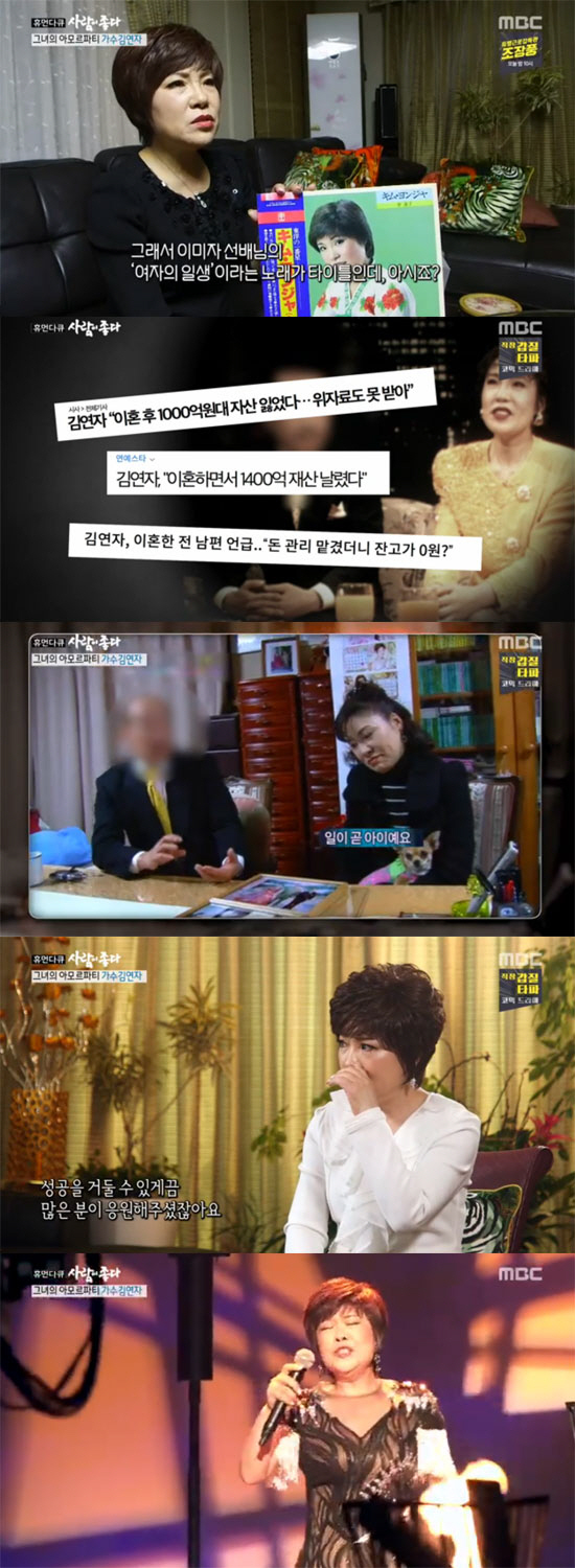 9일 방송된 MBC '휴먼다큐 사람이 좋다'에서는 제3의 전성기를 맞고 있는 역주행의 신화, 가수 김연자가 출연했다.