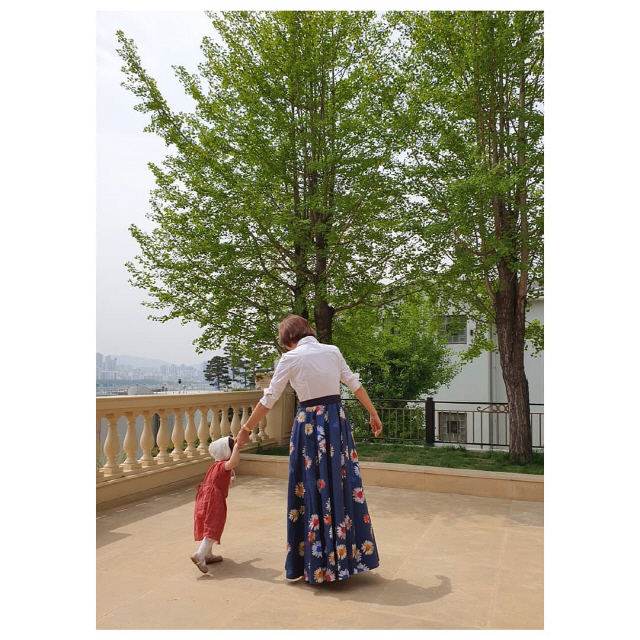23일 소유진은 자신의 인스타그램을 통해 "#돌사진 찾으러 갔다가 애들이랑 한참을 놀다왔네 ^^ "라는 글과 함께 근황을 담은 사진을 게재했다.