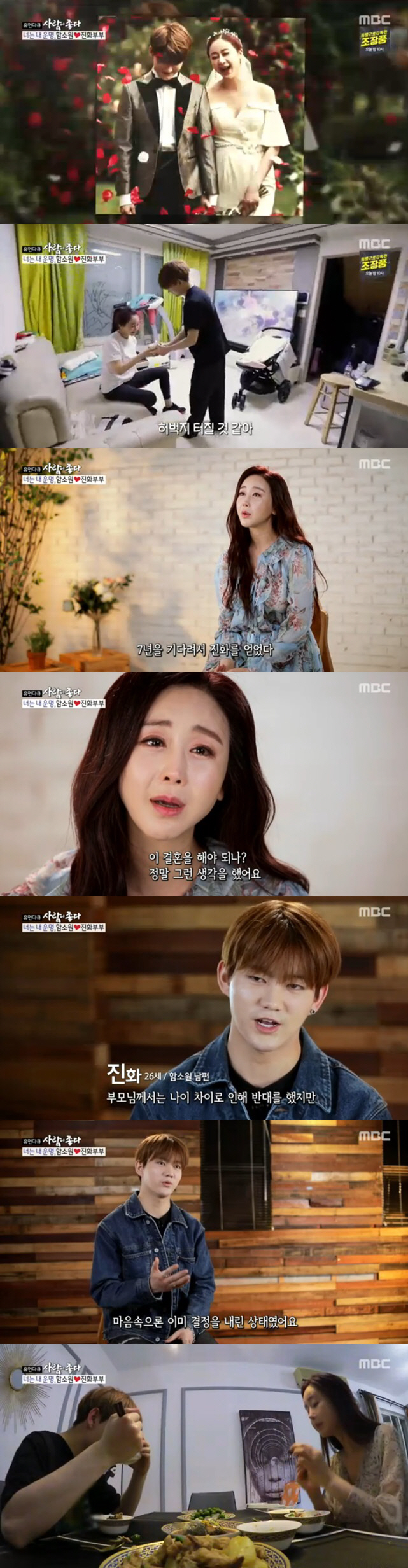 진화의 아버지는 부자관계를 끊자고 할 정도로 완강했다고. 함소원은 "아버님이 7년을 기다려서 진화를 얻었다고 하시더라. '이 아들이 나한테 어떤 아들인지 알 수 있겠니?'라고 하시는데 이 결혼을 해야하나라는 생각이 들었다"며 눈물을 보였다.