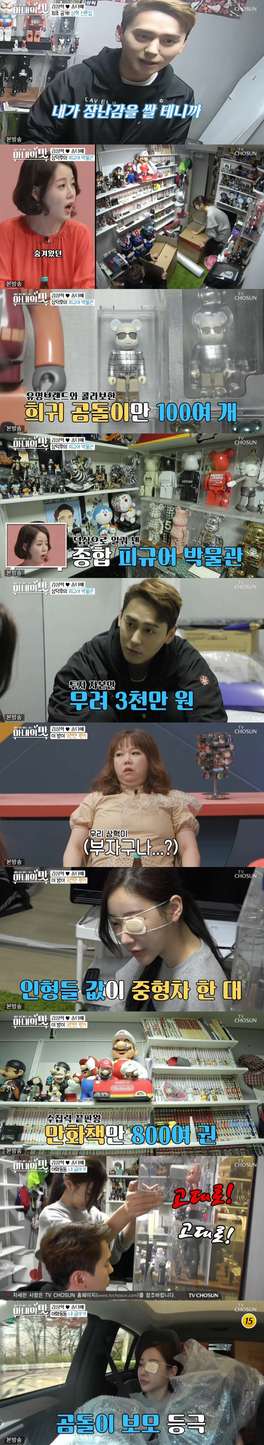 이어 송다예는 "피규어 300개 다 합하면 얼마냐"고 물었다. 김상혁은 "개당 100만원인 것도 있고 1000만원 짜리도 있다. 시세는 모르겠지만 내가 샀을 때 3000만원 정도 일 것이다"고 답해 모두를 놀라게 만들었다.