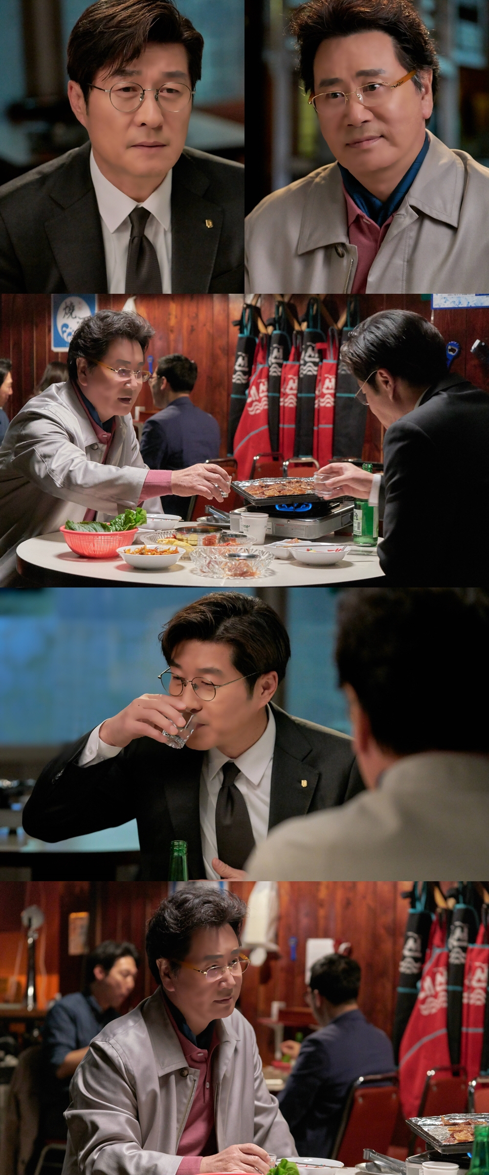 [스포츠조선닷컴 이지현 기자] '더 뱅커' 감사 김상중과 은행장 유동근의 수상한 껍데기집 회동이 포착돼 시선을 모은다. 대한은행의 절대 권력을 손에 쥐고 비리의 중심에 있는 유동근과 이를 끝까지 파헤치려는 김상중이 마주앉아 소주잔을 기울이고 있는 모습은 보는 이들을 의아하게 만든다.