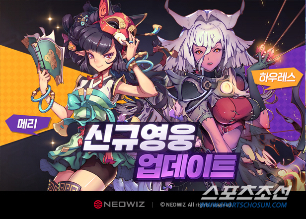 5성 신규 조합 영웅 와 4성 영웅도 새롭게 업데이트 된다. 5성 조합 영웅 '메리'는 기존 '아스타로트'와 '샤를로트' 이후 세 번째로 선보이는 영웅으로, 동양풍의 외모를 가지고 있다. 나무 속성으로 생명력 흡수, 여러 적군의 행동 게이지를 감소시키거나 자신의 행동 게이지를 회복하는 등 다양한 스킬을 보유하고 있어 길드 대전, 오만의 탑에서 특히 유용하다고 회사측은 전했다. 4성 영웅 '하우레스'는 불 속성의 아처 클래스의 영웅으로 위력적인 공격 스킬이 특징이다.
