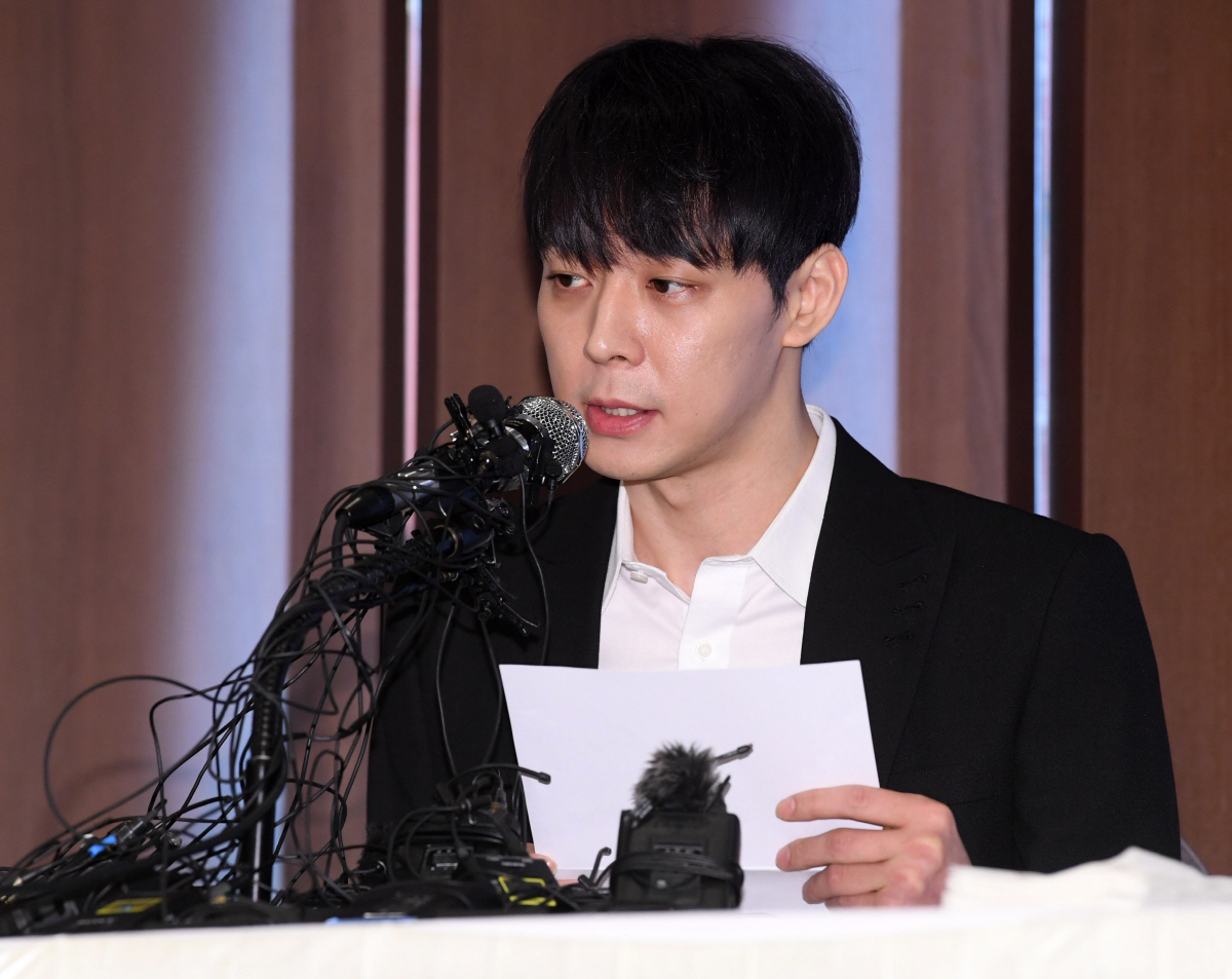 눈물의 기자회견 당시 박유천. 스포츠조선DB