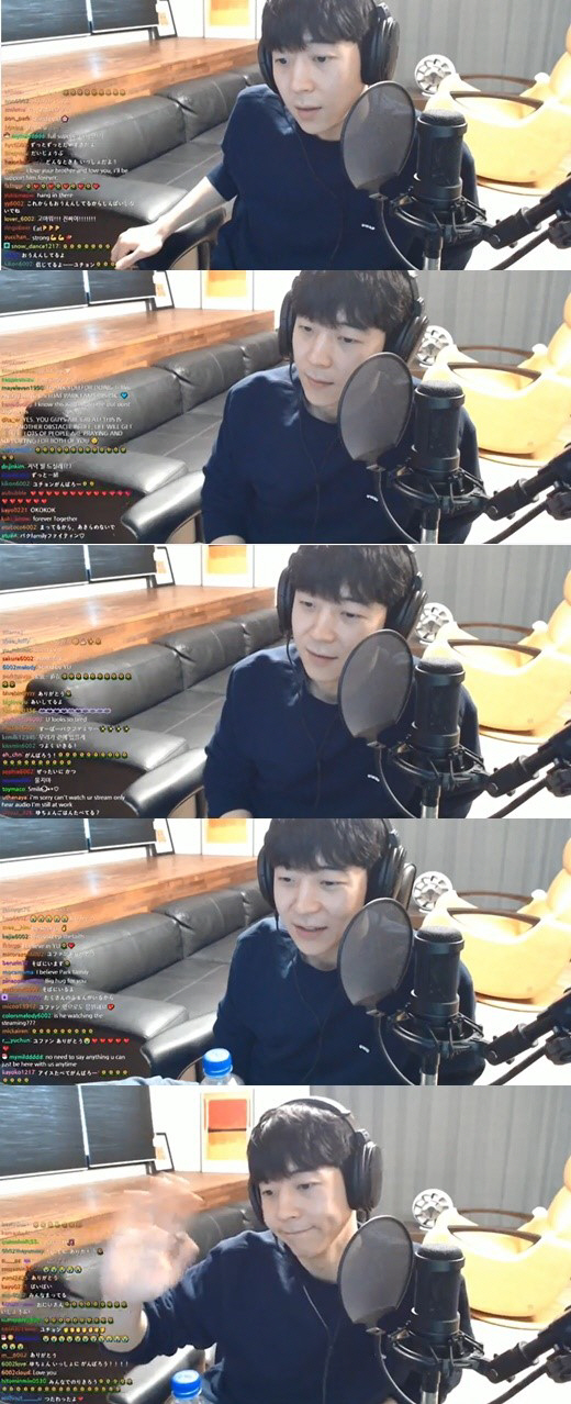 박유환은 24일 자신의 SNS에 "30분 정도만 방송하겠다"고 알린 뒤, 인터넷플랫폼 '트위치'를 통해 깜짝 생방송을 진행했다.