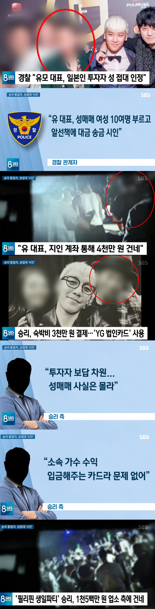 [스포츠조선닷컴 정안지 기자] 유리홀딩스 유인석 대표가 성접대 사실을 시인했다. 그러나 승리 측은 "성매매는 몰랐다"고 주장했다.