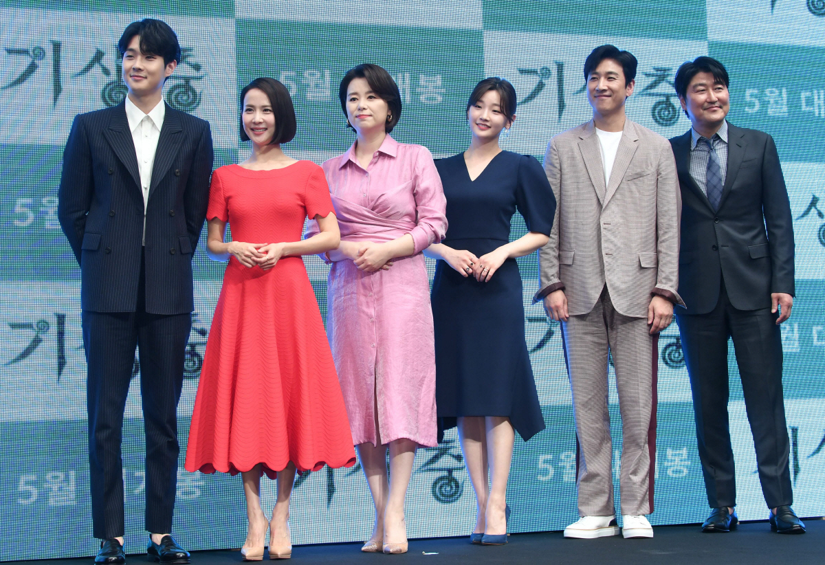 영화 '기생충'의 주연배우들이 22일 소공동 웨스틴조선호텔에서 열린 제작보고회에서 포토타임을 갖고 있다.