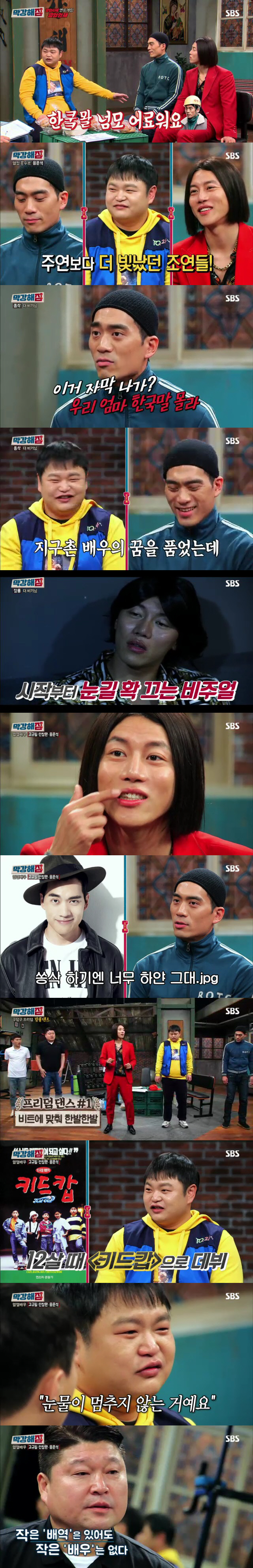 이어 고규필은 배우 정경호 덕분에 영화 '롤러코스터'에 출연해 한 페이지 정도의 긴 대사를 맡게 된 이야기를 전했다. 고규필은 "그런 긴 분량의 대사를 맡아본 것은 처음이었다. 정말 많이 연습했는데 막상 현장에서 연기를 잘 하지 못했다. 여러 번 촬영 끝에 OK를 받았다. 촬영을 마치고 차를 타고 가는데 눈물이 멈추지 않더라. 연기를 하고 싶은데 너무 못했으니까"라며 눈물을 보여 안타까움을 자아냈다. 이에 강호동은 "작은 '배역'은 있어도 작은 '배우'는 없다"라며 "그런 시련이 있었고 그것을 뛰어넘었기 때문에 지금 이 자리에서 '열혈사제'를 통해 연기의 즐거움을 줄 수 있는 거다"라며 진심어린 마음을 전했다.
