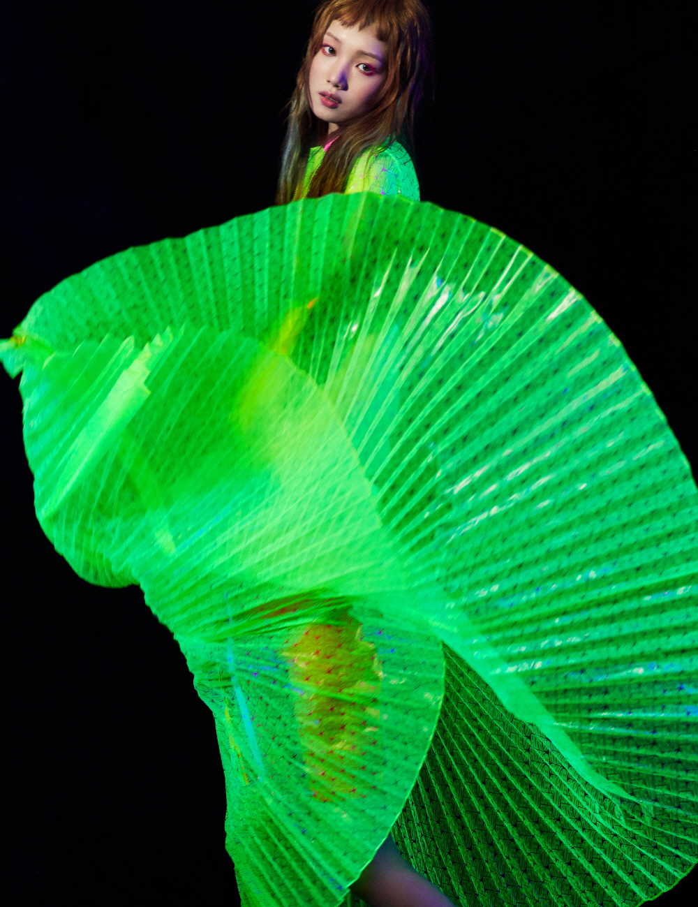 배우 이성경이 더블유코리아 5월 호에 실린 화보를 공개했다. 키치한 뱅 헤어와 메이크업, 그리고 네온 컬러의 향연이 돋보이는 이번 화보에서 이성경은 패셔너블함의 정수를 보여줬다.