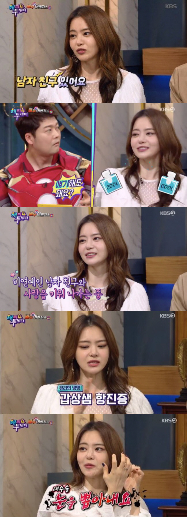 서유리는 2일 방송된 KBS2 예능프로그램 '해피투게더 시즌4'에 출연해 다양한 이야기를 전했다.