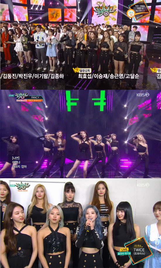 무대에 앞서 인터뷰를 가진 트와이스는 1위 후보에 오른 것에 대해 "트와이스를 사랑하고, 응원해주시는 모든 분들께 감사하다. 무엇보다 '원스'에게 감사하다. '팬시'로 마지막 방송인데 1위 후보라 너무 감사하다. 곧 콘서트를 하니까 기다려주셨으면 좋겠다"고 말했다. 이어 "멤버들 얼굴에 점을 찍고 무대를 하겠다"고 1위 공약을 언급해 기대감을 높였다.