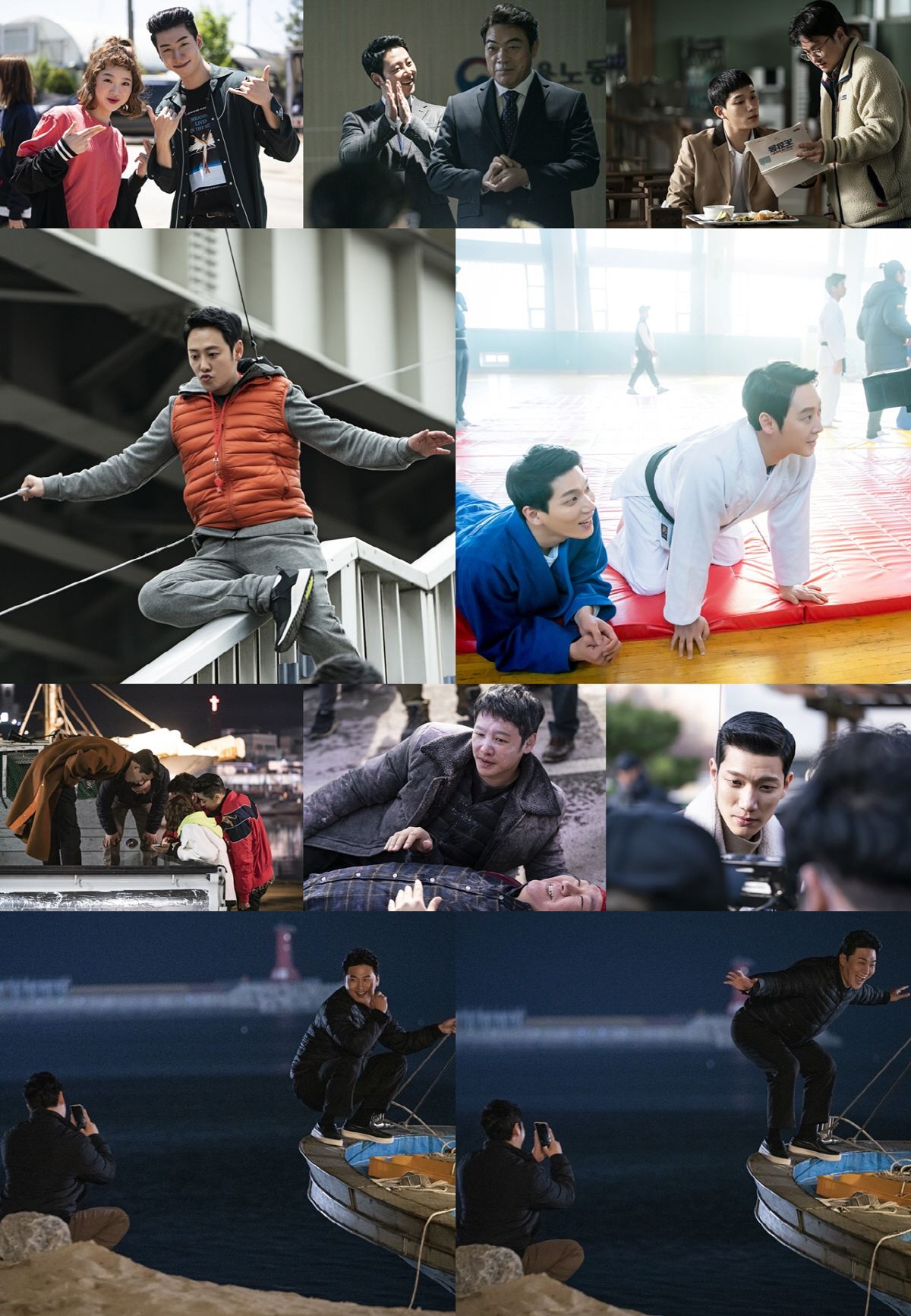 마지막으로 극 중에서 톰과 제리 같은 앙숙 케미로 시청자들에게 뜨거운 사랑을 받고 있는 김동욱과 오대환의 모습을 포착한 스틸 컷은 그야말로 압권이다. 촬영 쉬는 시간에 멋짐부터 잔망까지 다양한 느낌의 포즈를 취하고 있는 오대환과 그런 그의 모습을 열심히 사진 찍고 있는 김동욱을 포착한 것. 특히 이번 스틸 속에 담긴 촬영 현장은 극 중에서 오대환이 밀항을 하려던 찰나 김동욱에게 체포 당하면서 제대로 응징 당하는 장면과 찍은 당일이기에 작품과는 180도 다른 두 남자의 예상 밖(?)으로 귀여운 모습이 단 번에 눈길을 사로잡는다. 특히 극 중에서 김동욱과 오대환의 대립구도는 시청자들이 유독 열광하고 전폭적인 지지를 보냈었던 만큼, 이번에 공개된 스틸 속에 담긴 촬영 쉬는 시간을 즐기는 두 남자의 의외(?)의 모습은 시청자들이 빠져들 수 밖에 없는 마력을 발산하는 동시에 '특별근로감독관 조장풍'을 향한 기대를 더하게 만든다.