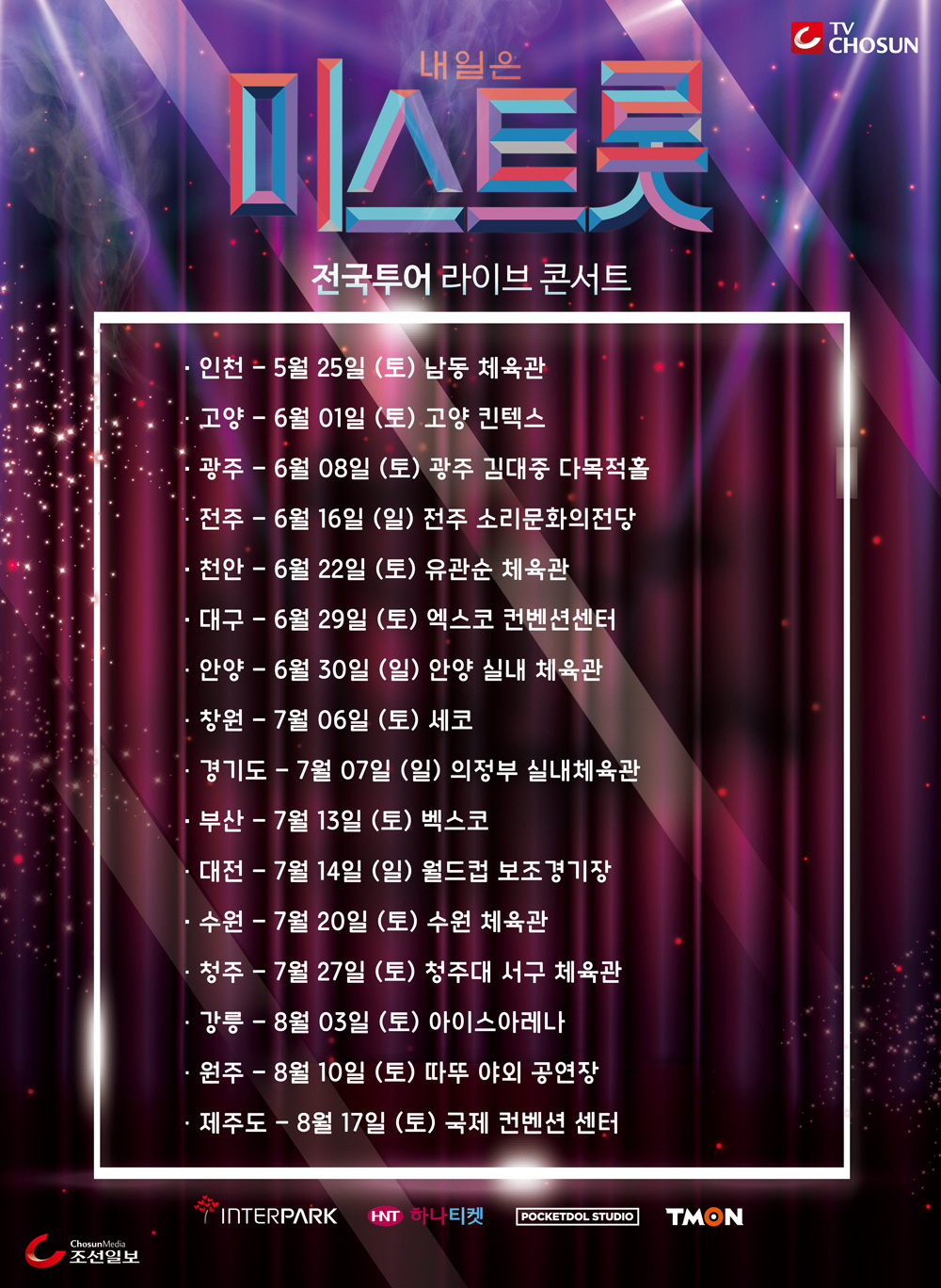 트로트 열풍을 불러일으키고 있는 '미스트롯' 전국투어 콘서트의 추가 지역 티켓은 9일 오후 8시 인터파크를 통해 오픈된다.