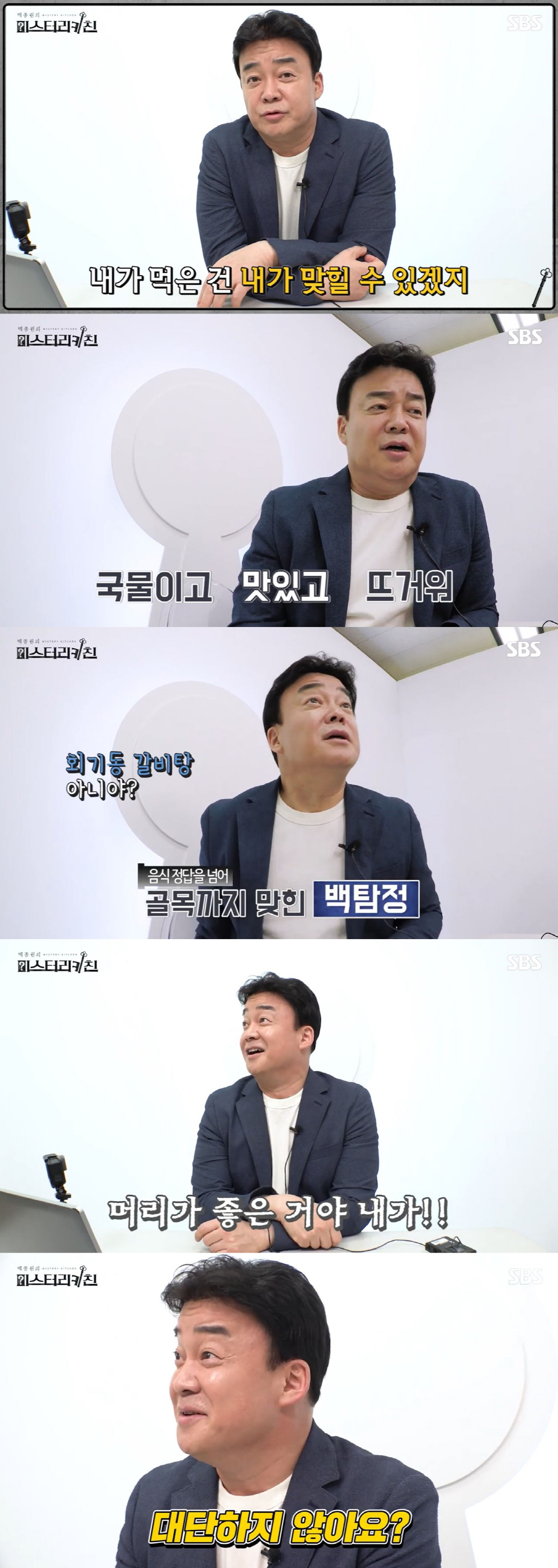 [스포츠조선닷컴 정안지 기자]요리 백과사전 백종원 대표가 소름 돋는 음식 추리력을 뿜어냈다.