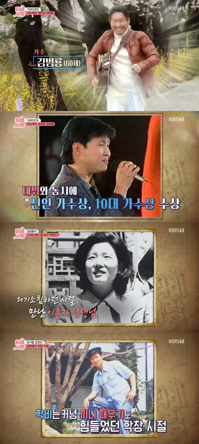 10일 방송된 KBS1 예능프로그램 'TV는 사랑을 싣고'에서는 '바람 바람 바람'의 가수 김범룡이 출연, 40년 전 첫사랑 찾기에 나섰다.