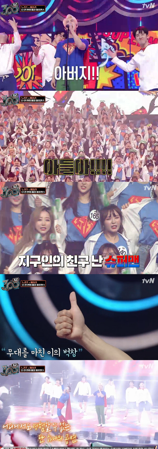 노라조는 262명의 떼창러들과 '슈퍼맨' 무대를 꾸몄다. 어디에서도 경험할 수 없는 단 하나의 공연에 노라조는 "울컥했다"면서 "오늘만큼은 우리의 연예인이었다"며 벅찬 소감을 전했다.
