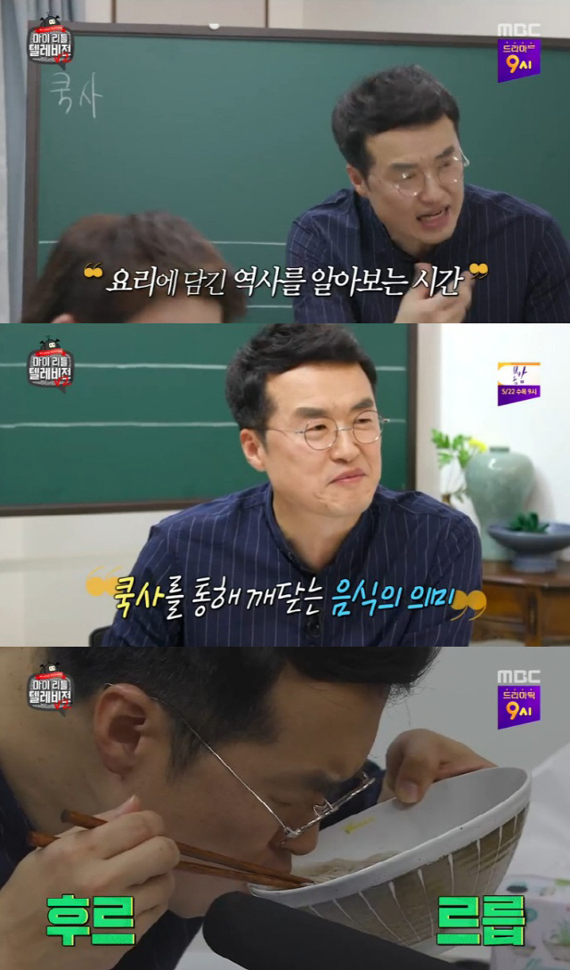 첫 등장한 강사 최태성은 개그맨 유민상, 걸그룹 프로미스나인 노지선과 함께 먹방과 역사를 결합한 '쿡사(cook+史)' 콘텐츠를 선보였다. 이날 최태성은 평양 음식, 그 중에서도 냉면에 대한 역사를 설명했다. 배달 음식의 원조는 냉면이었다고. 최태성은 "일제강점기에 자전거를 타고 한쪽 손에는 냉면 그릇 20개를 올리고, 한쪽 손에는 손전등과 육수 주전자를 달리고 배달을 갔다"고 밝혔다. 순조도 냉면을 좋아한 역사 인물 중 한 명이었다. 순조는 어린 나이에도 달 구경을 하다 신하들과 냉면을 배달시켜 먹었다고. 고종 역시 사계절 내내 냉면만 먹을 정도의 냉면 마니아였다. 최태성은 이처럼 흥미로운 역사 이야기에 이어 먹음직스러운 먹방으로 눈길을 끌었다. 평양냉면을 처음 먹어본 안유진은 당혹스러움을 숨기지 못했다. 그러나 몇 번 먹어본 후 "맛있진 않은데 생각난다는 말이 뭔 지 알 것 같다"며 광고 같은 먹방을 펼쳤다.
