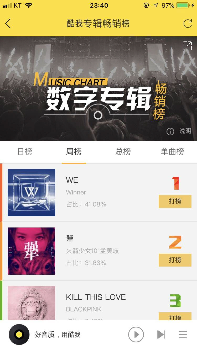위너, QQ·쿠거우·쿠워뮤직 정상…"韓中 차트 동시 석권"