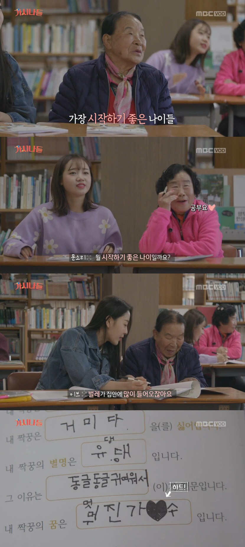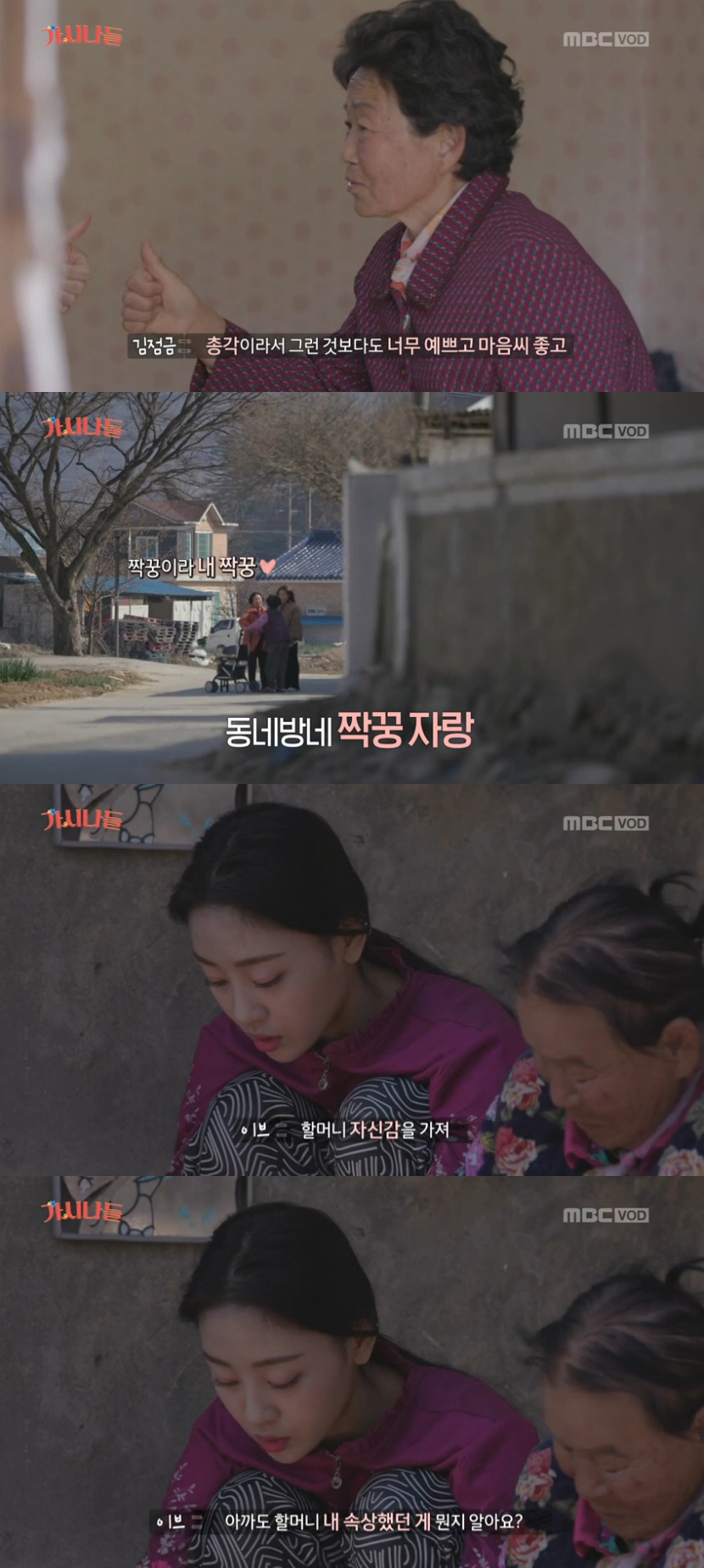 지난 19일 첫 방송된 MBC 예능프로그램 '가시나들'에서는 경남 함양 문해학교의 다섯 할머니들과 가정교사 문소리, 한글 수업 파트너 (여자) 아이들 우기, 위키미키 최유정, 우주소녀 수빈, 이달의 소녀 이브, 배우 장동윤의 하루가 담겼다.