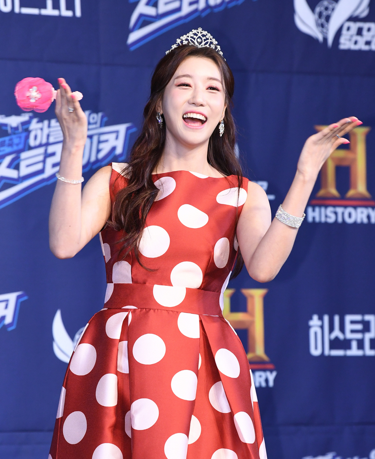 21일 서울 마포구 가든호텔에서 히스토리 채널 신규 예능 프로그램 '드론 축구: 하늘위의 스트라이커' 제작발표회가 열렸다. 제작발표회에 참석해 포즈를 취하고 있는 두리. 마포=송정헌 기자 songs@sportschosun.com/2019.05.20/