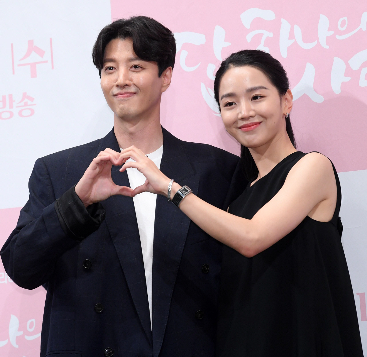 KBS2 새 수목드라마 '단, 하나의 사랑'의 제작발표회가 21일 임피리얼팰리스에서 열렸다. '단, 하나의 사랑'은 사랑을 믿지 않는 발레리나와 큐피드를 자처한 사고뭉치 천사의 판타스틱 천상 로맨스다. 포토타임을 갖는 이동건과 신혜선의 모습. 허상욱 기자 wook@sportschosun.com/2019.05.21/