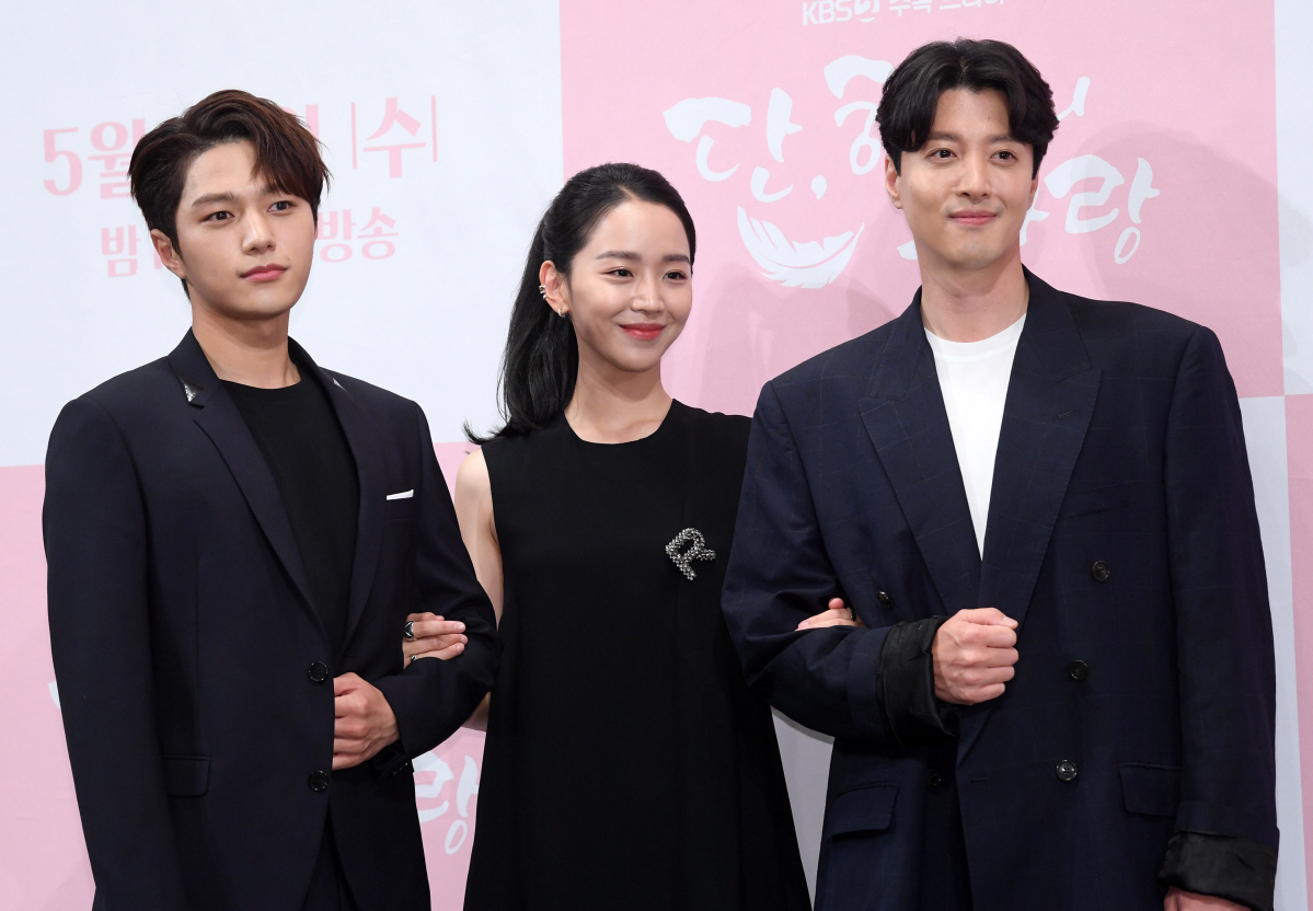 KBS2 새 수목드라마 '단, 하나의 사랑'의 제작발표회가 21일 임피리얼팰리스에서 열렸다. '단, 하나의 사랑'은 사랑을 믿지 않는 발레리나와 큐피드를 자처한 사고뭉치 천사의 판타스틱 천상 로맨스다. 포토타임을 갖는 김명수, 신혜선, 이동건의 모습. 허상욱 기자 wook@sportschosun.com/2019.05.21/
