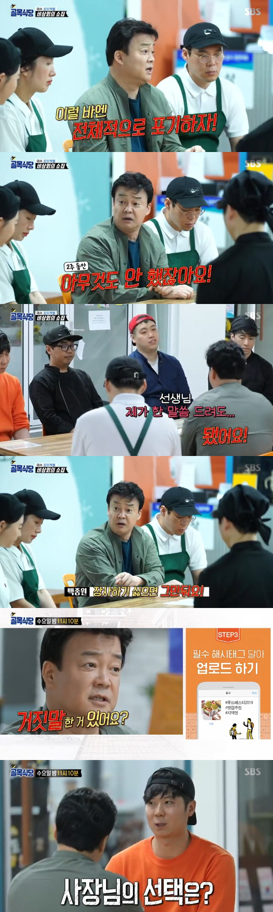 사장들이 변명을 하려했지만 백종원은 "됐다, 안 듣겠다. 장사하기 싫으면 그만두라. 투정 받아줄 상황아니다. 이유 들어줄 이유없다, 음식점 실패하면 손님이 들어주냐. 내가 왜 그 이유를 들어줘야하냐. 그 이유 듣기엔 이미 지나갔다"며 자리를 박차고 떠났다.