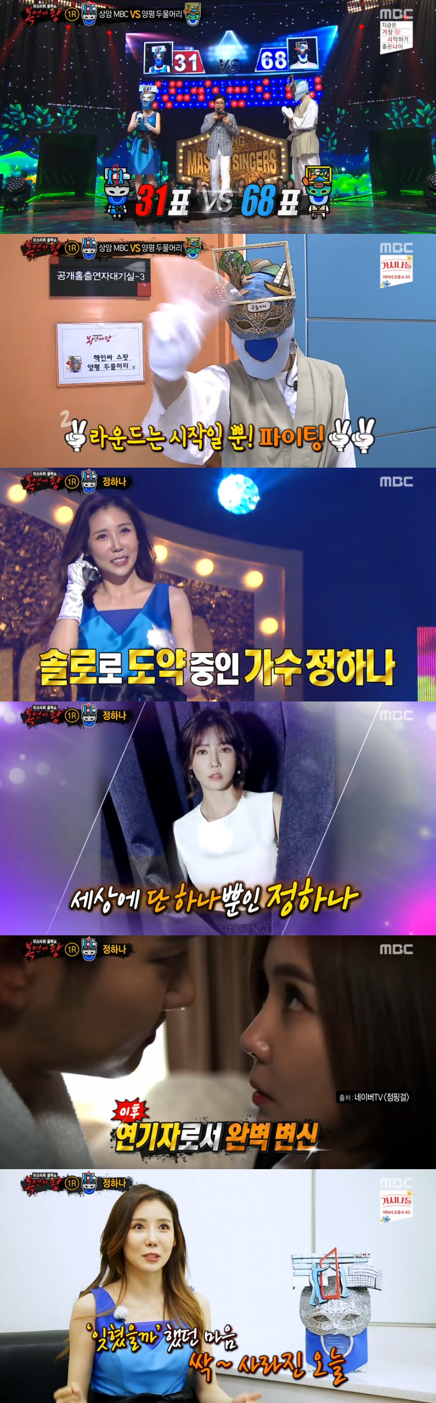 '양평 두물머리'는 68대 31로 2라운드에 진출했다. 이어 공개된 '상암MBC'의 정체는 그룹 시크릿 정하나였다. 정하나는 "전 징거 현 정하나입니다"라며 "무대를 4년 만에 선다. 그래서 눈물이 나더라. 전 아직도 가수가 꿈이다. 그리웠다"며 눈시울을 붉혔다.