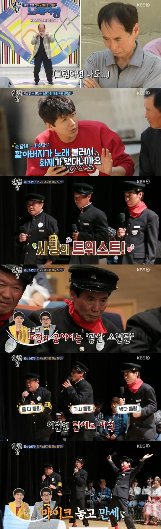 예선 당일, 광산소년단은 추억의 고등학교 교복으로 맞춰 입고 위풍당당한 모습으로 등장했다. 설운도의 '사랑의 트위스트'를 선택한 김승현 아버지는 전국노래자랑 참가자들의 만만치 않은 실력을 보고 긴장했다. 이윽고 무대에 오른 세 사람은 신명나게 트위스트 댄스를 추며 노래를 불렀지만, 노래 중간 단체로 가사와 박자를 틀리며 버벅대는 모습을 보였다.
