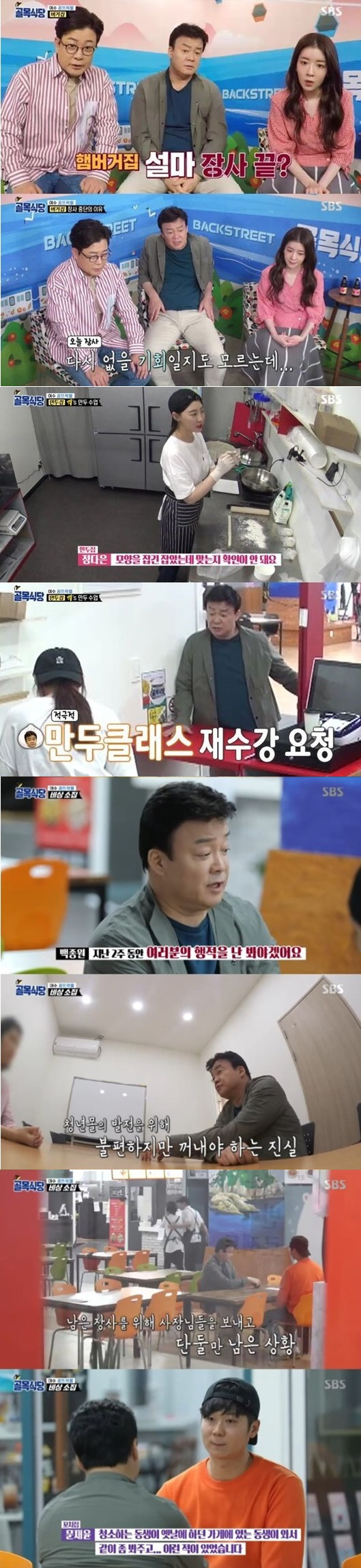 이날 방송은 '여수 꿈뜨락몰 편' 네 번째 이야기로 꾸며져, 각 식당들의 신메뉴 장사가 이뤄졌다. 앞서 사장님들은 '장사포기'를 선언한 바 있었지만, 백종원의 긴급소집 이후 장사에 돌입하기로 했다. 2주 동안의 시간이 있었지만, 아직 연구가 부족해 보이는 사장님들을 보며 김성주는 "다른 골목이라면 결과물을 보일 시간"이라고 안타까워했다.