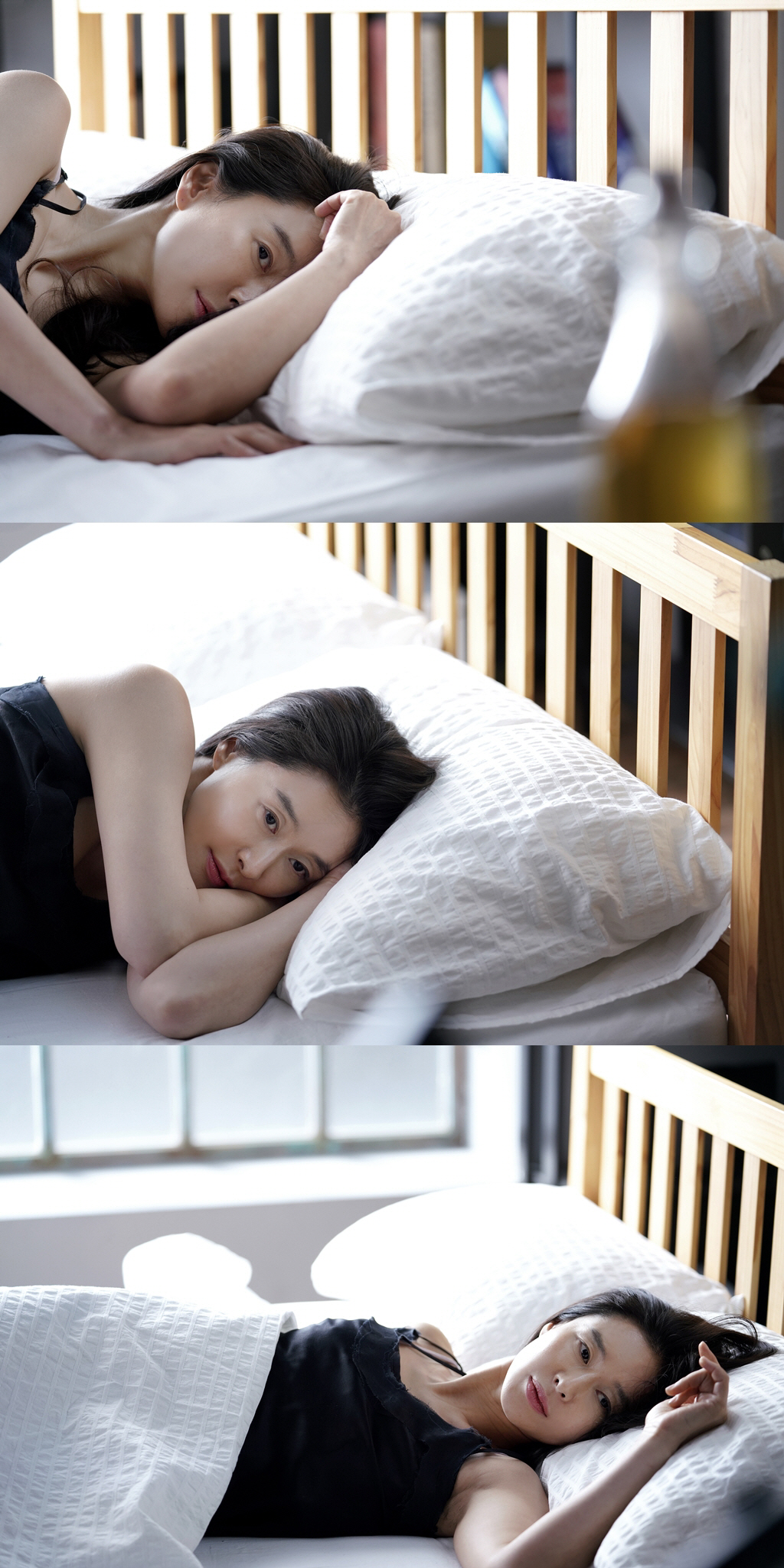 공개된 사진 속 예지원은 아찔한 슬립 차림으로 홀로 침대 위에 누워있다. 그녀의 뒤쪽 창문에서 비추는 밝은 햇살, 검은 의상과 대비되는 순백의 침대까지. 사진 속 모든 미장센이 감각적이고 아름답다. 이와 함께 이토록 매혹적인 예지원이 누굴 바라보고 있는 것인지 강한 호기심을 남긴다.