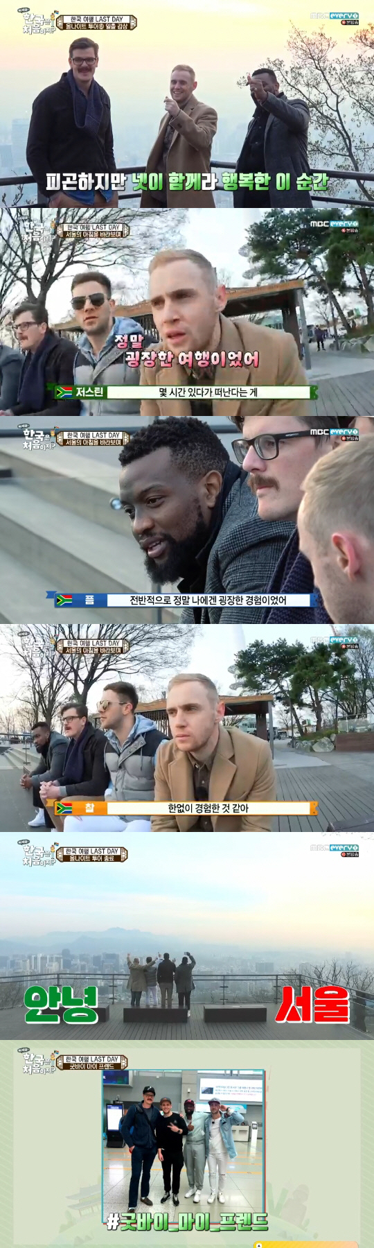 시원하게 목욕까지 마치고 나온 저스틴과 친구들은 마지막 목적지 서울타워로 향했다. 밤과는 다른 고요한 서울의 아침을 마주한 친구들에게 저스틴은 "이곳이다. 내가 진실로 사랑하는 곳. 서울의 모습이다"라고 말했다. 이어 "우리 일몰에서 일출까지 본 거다. 환상적인 밤이다. 너희가 자랑스럽다"며 함께 기념 촬영을 했다.