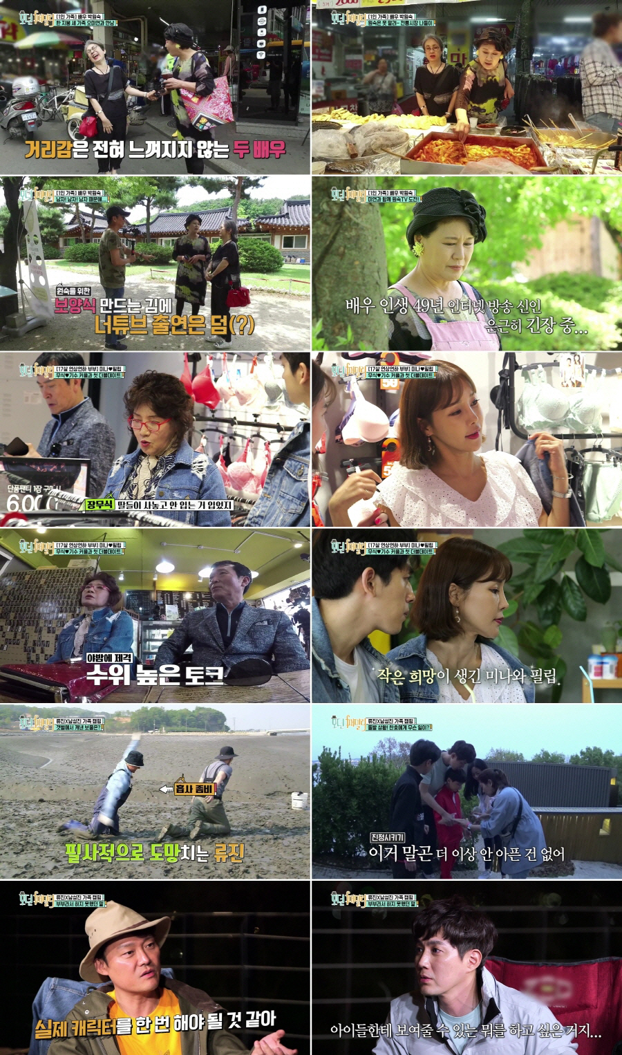 생애 첫 합동 캠핑에 나선 류진-김지영 가족은 말라버린 갯벌에서 '무릎 달리기 게임'으로 저녁내기에 나섰다. 류진과 남성진은 진흙에 몸을 구르며 열혈 대결에 임해 '빅 재미'를 선사했다. 이어진 저녁 식사 준비 도중 류진의 둘째 아들 찬호가 손을 다치는 돌발 상황이 벌어졌고, 이혜선과 김지영은 가방에 챙겨온 응급 약으로 차분하게 처치에 임해 '아들 엄마'의 내공을 보여줬다. 밤이 찾아오자 두 부부의 진솔한 토크가 펼쳐졌다. "'모던 패밀리'에서의 진짜 모습을 작품에서도 보여주면 좋겠다"는 남성진의 조언에 류진은 "완벽하지 않으면 (일을) 벌리기가 싫다"며, 자신의 연기를 지켜볼 아이들을 생각하는 배우로서의 고민을 드러냈다. 뒤이어 본격적인 '구직'에 나선 류진의 모습이 예고편으로 이어져, 이어지는 방송에 대한 흥미를 더했다.