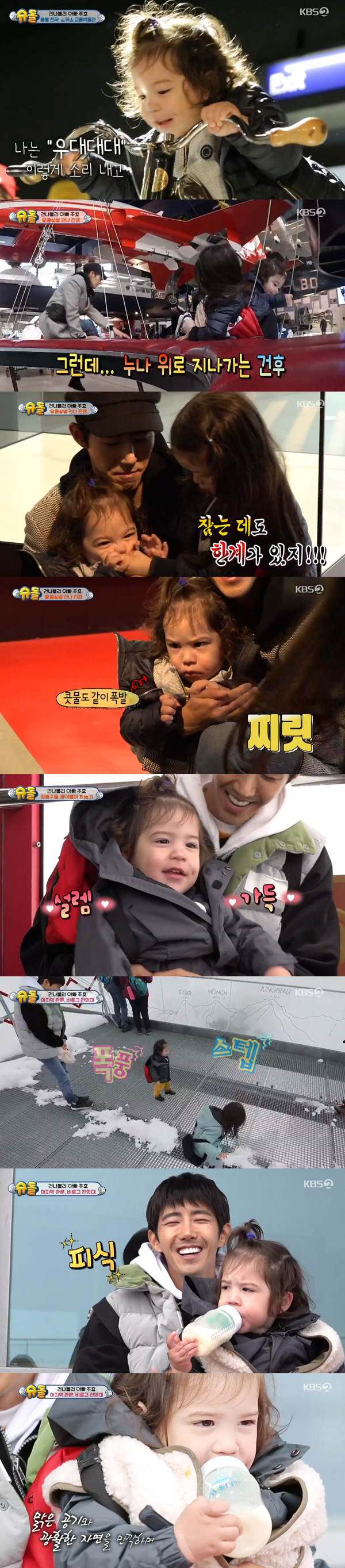 [스포츠조선닷컴 정안지 기자] '슈돌' 소율이 딸 희율을 위해 엘사로 변신했다. 또한 벤틀리의 머리 위에 새 똥이 정확히 떨어져 웃음을 안겼다.