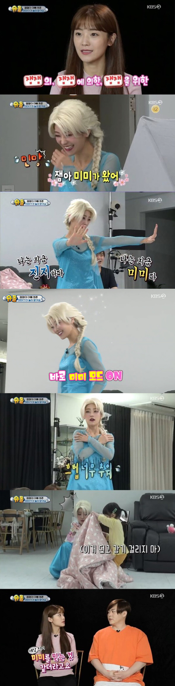 희율이는 엘사로 변신한 엄마를 못 알아본 채 '미미'라고 부르며 엘사를 쫓아다녔다. 초반 쑥스러워하던 소율은 희율이가 즐거워하자 성대모사를 하면서 혼신의 연기를 펼쳤다.