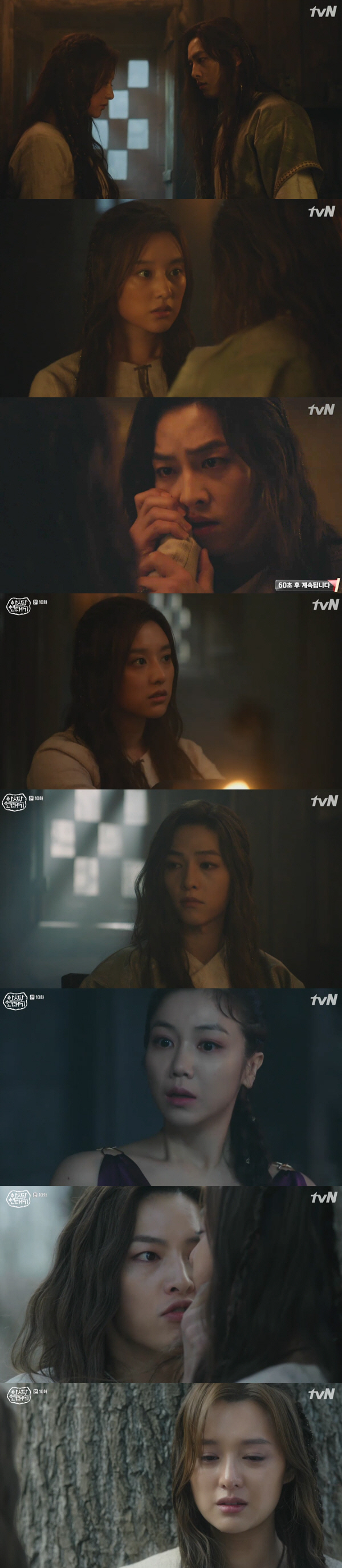 30일 방송된 tvN 토일드라마 '아스달 연대기'에서는 탄야(김지원 분)이 은섬(송중기 분)이 살아있다는 사실을 채은(고보결 분)으로부터 들었다.