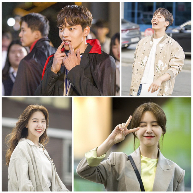 이와 관련 여진구-방민아가 웃음을 멈추지 못하는, 즐거운 현장 뒷모습이 공개돼 시선을 강탈하고 있다. 먼저 여진구는 극중 여자 친구 엄다다(방민아)를 위해 탄생된 후 최초로 '놀이공원 아르바이트'에 도전하는 천진난만한 로봇 영구(여진구)를 열연하며 넘치는 장난기로 현장을 달궜다. 여진구는 놀이공원 직원이 입는 드라큘라 복장을 찰떡같이 소화했고, 이어 흡혈귀니까 송곳니가 필요하다며 즉석에서 개구진 표정을 지어 스태프들의 웃음보를 터트렸다.