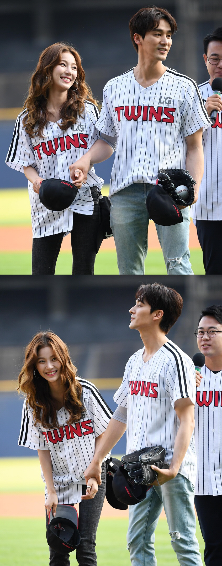 LG 트윈스와 한화 이글스의 2019 KBO 리그 경기가 2일 잠실구장에서 열렸다. 경기 전 '연애의 맛2'에 출연하고 있는 오창석-이채은 커플이 시구와 시타를 했다. 관중들에 인사를 하는 오창석 이채은 커플의 모습. 잠실=허상욱 기자 wook@sportschosun.com/2019.07.02/