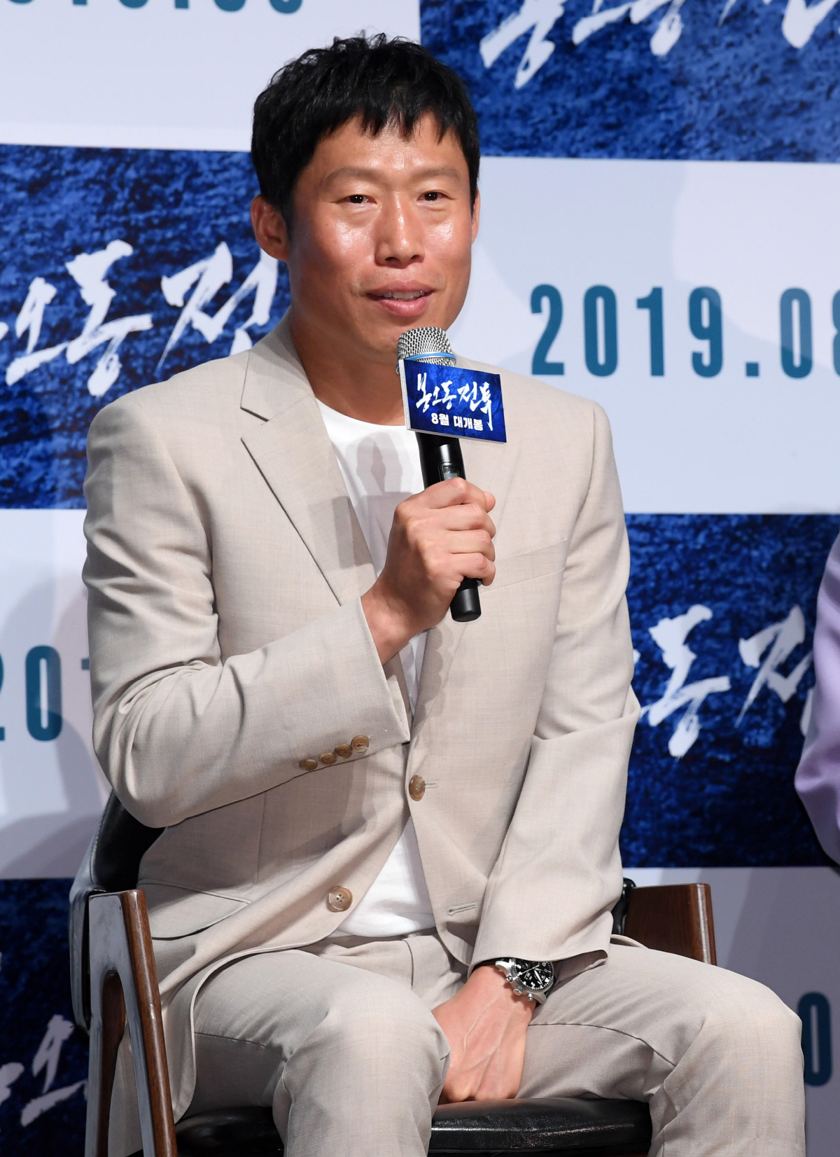 영화 '봉오동 전투'의 제작보고회가 3일 압구정 CGV에서 열렸다. '봉오동 전투'는 1920년 6월, 죽음의 골짜기로 일본 정규군을 유인해 최초의 승리를 이룬 독립군의 전투를 그린 영화다. 질문에 답하는 유해진의 모습. 압구정=허상욱 기자 wook@sportschosun.com/2019.07.03/