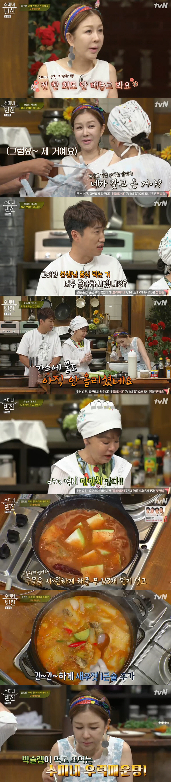 [스포츠조선닷컴 정안지 기자] '수미네 반찬' 우럭매운탕에 감자범벅, 새콤달콤 오이냉국이 시청자들의 침샘을 자극했다.