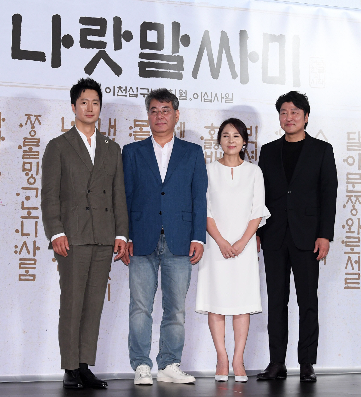 '나랏말싸미'는 모든 것을 걸고 한글을 만든 세종과 불굴의 신념으로 함께한 사람들, 역사가 담지 못한 한글 창제의 숨겨진 이야기를 그린 영화다. 포토타임을 갖는 박해일 조철현 감독 전미선 송강호의 모습. 동대문=허상욱 기자 wook@sportchosun.com/2019.06.25/